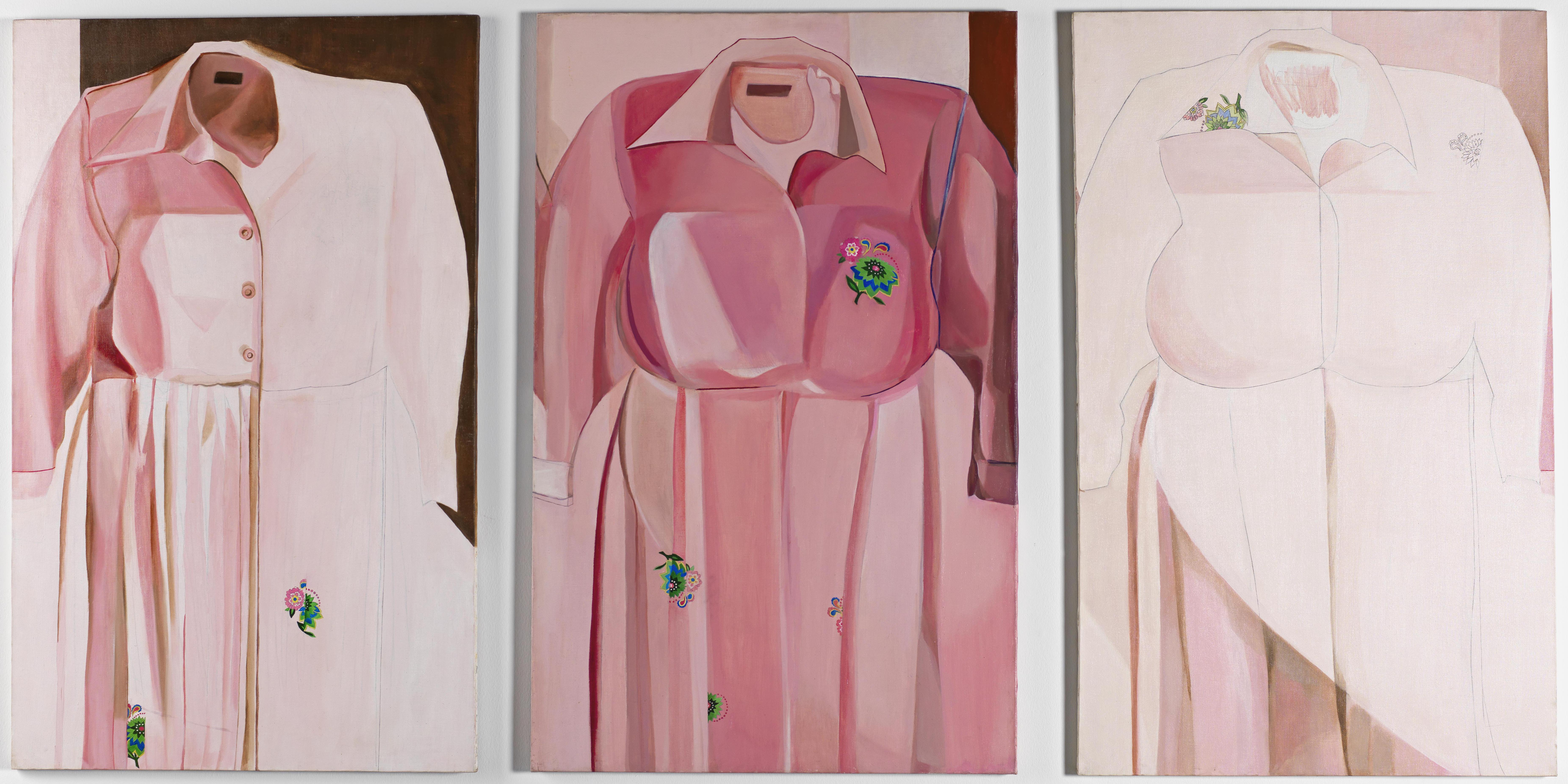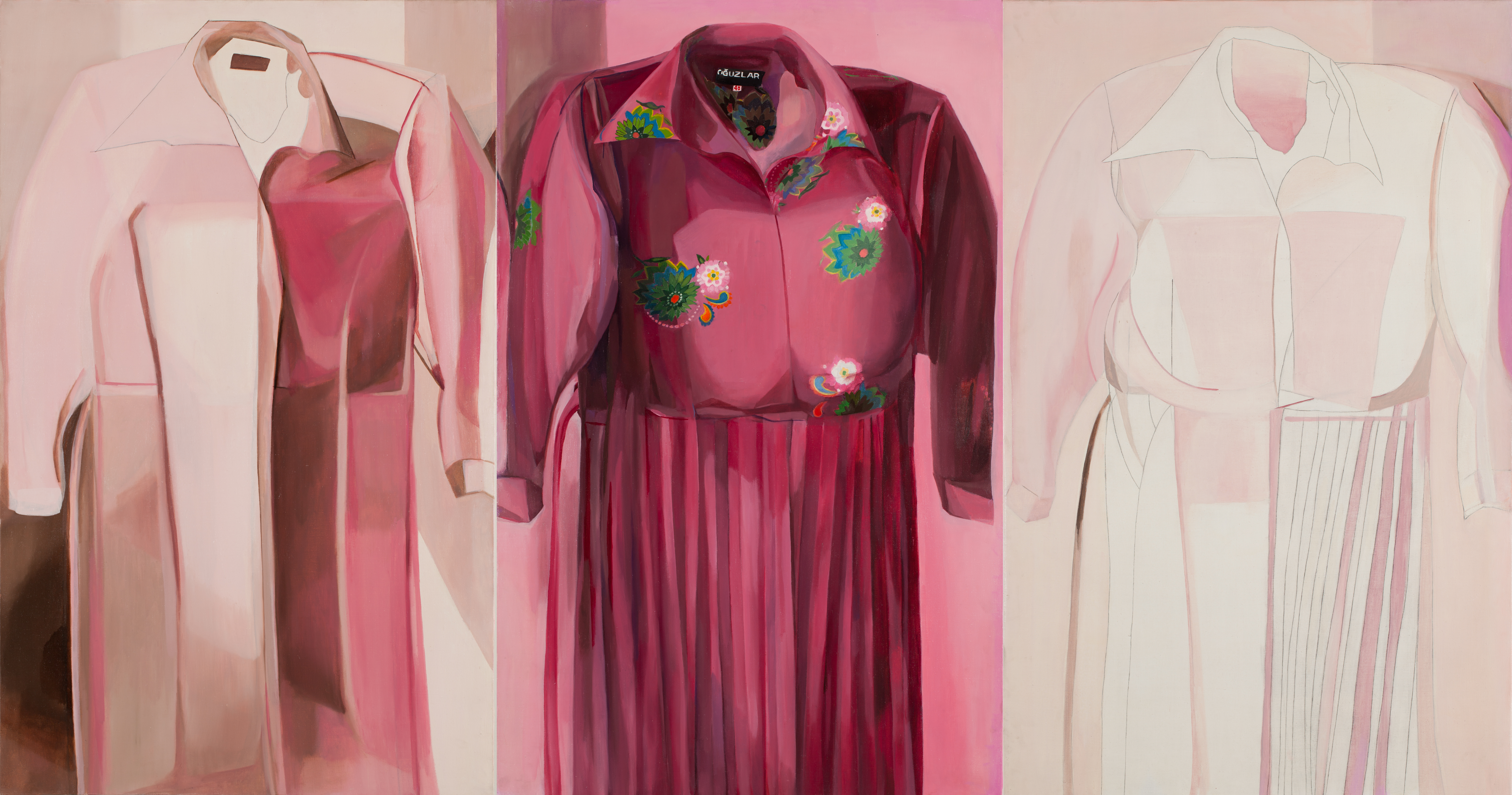 Şerife worked as a cleaner at the house of Duben’s sister. Duben wanted to paint her portrait but Şerife refused to pose for the paintings as she thought it wouldn’t be proper. This didn’t discourage Duben who purchased a dress from the market which she filled up with newspaper, trying to give it form – and life. This resulted in a series of paintings depicting this body without a head, an inhabited floating dress. Through Şerife, Duben wished to showcase how society renders women – and their labour – invisible. With this series, Duben also brought the question of domesticity into the art gallery, as well as the notion of internal migration – most of the women who were in Şerife’s case would have migrated from the villages to the city.
