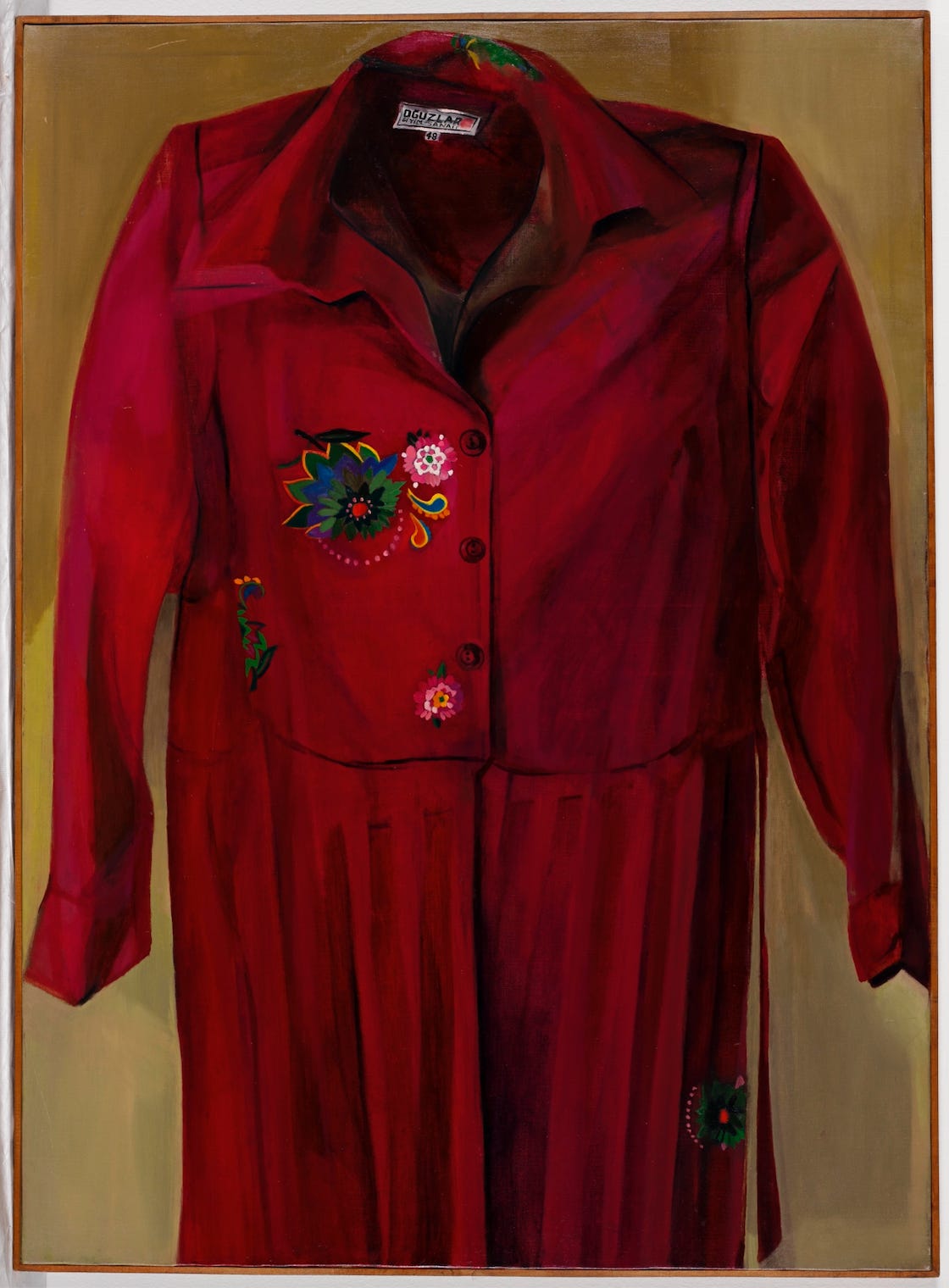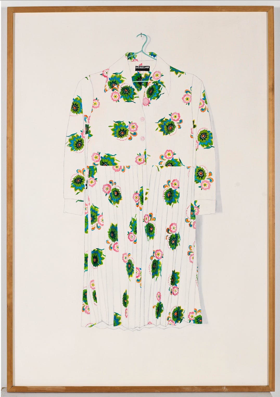 Şerife worked as a cleaner at the house of Duben’s sister. Duben wanted to paint her portrait but Şerife refused to pose for the paintings as she thought it wouldn’t be proper. This didn’t discourage Duben who purchased a dress from the market which she filled up with newspaper, trying to give it form – and life. This resulted in a series of paintings depicting this body without a head, an inhabited floating dress. Through Şerife, Duben wished to showcase how society renders women – and their labour – invisible. With this series, Duben also brought the question of domesticity into the art gallery, as well as the notion of internal migration – most of the women who were in Şerife’s case would have migrated from the villages to the city.