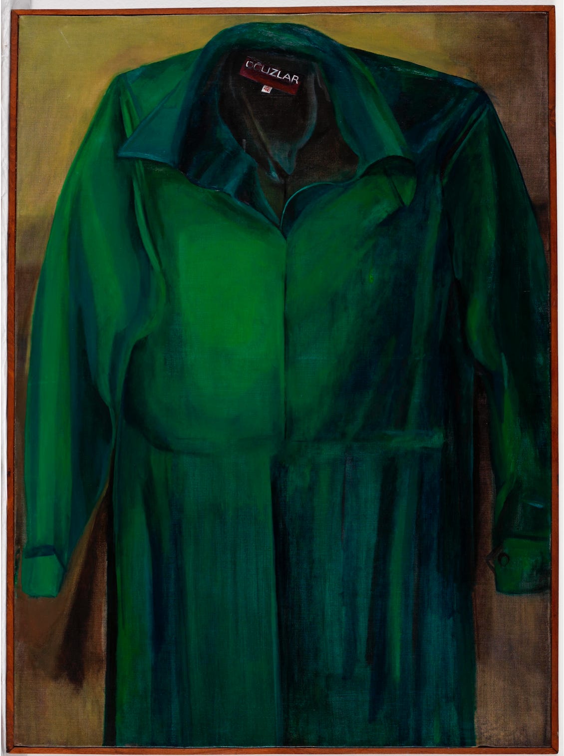 Şerife is a series of 12 pieces (one charcoal sketch and eleven oil paintings) which İpek Duben spent two years working on. They were exposed in 1982 in the artist’s first solo exhibition upon her return to Turkey. “Fifteen months later, I had produced eleven headless Şerife. The 12th painting showed the dress on a hanger. The sack-like, formless dresses didn’t put forward Şerife’s physical presence. Her signature was her absence: the dress became a metaphor for the Turkish woman from the lower classes and as such represented each and every woman who wasn’t given the place she deserves within society.”