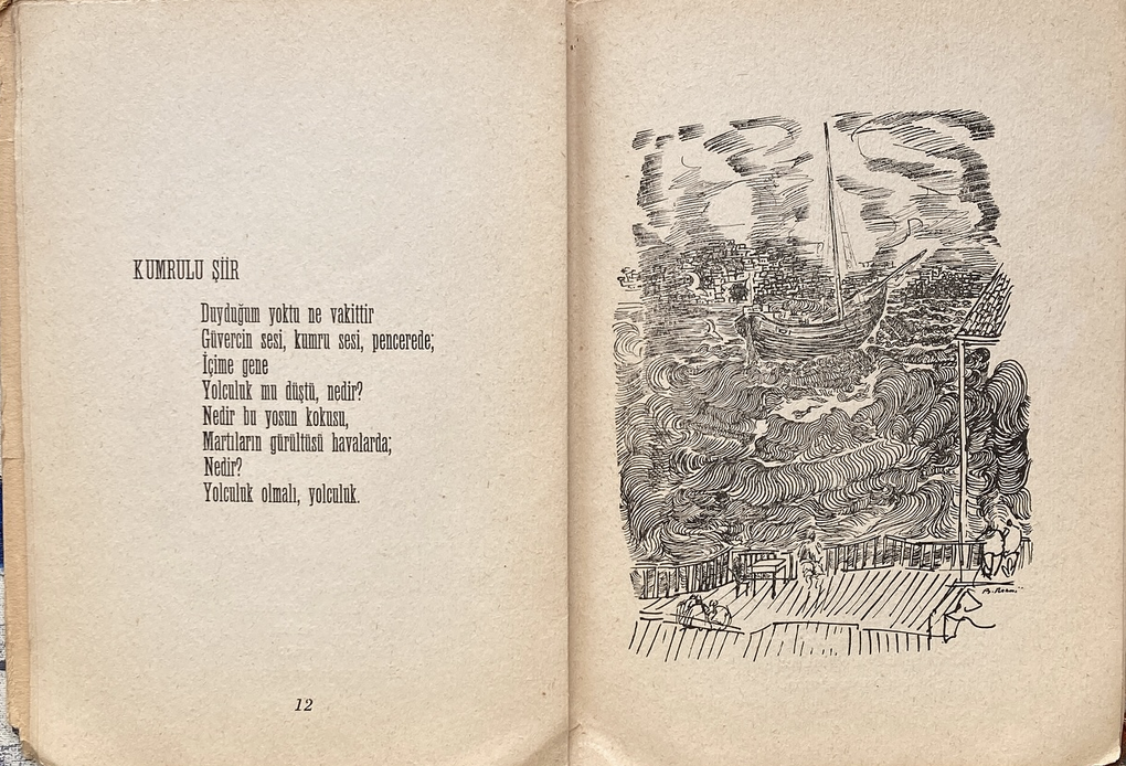 Agop Arad was also active in the literary community. He worked for various magazines and newspapers as a journalist and illustrator. He also designed book covers for his friends Orhan Kemal, Sait Faik Abasıyanık, Orhan Veli (to name a few). He did this to help their friends and support their works, without ever expecting a payment. “I’ve never really taken money into consideration when it came to art,” he said. He was featured in one of Sait Faik Abasıyanık’s short stories, Yaşasın Edebiyat (Long Live Literature).